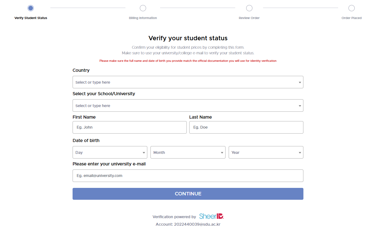 안녕하세요! 학생라이센스 만료 후 재구매하려고 하는데 국가가 뜨지 않고 한국 사이트에서 접속하면 접속 오류로 뜨는데 해결방법이 있을까요?