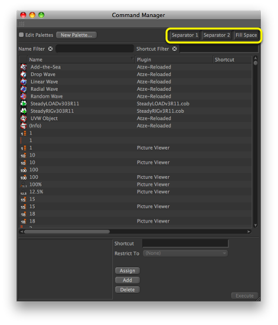 안녕하세요.제가 c4d를 만지작 거리다 파레트를 편집할까하는데밑에 그림처럼 아이콘 사이에 공간을 주고 싶은데정말 모르겠네요. 여기서 검색을 해봤지만 잘 못찾고 있어글을 남깁니다. 어려울 것 같지 않은데 못찾겠네요. 도움 부탁드립니다.