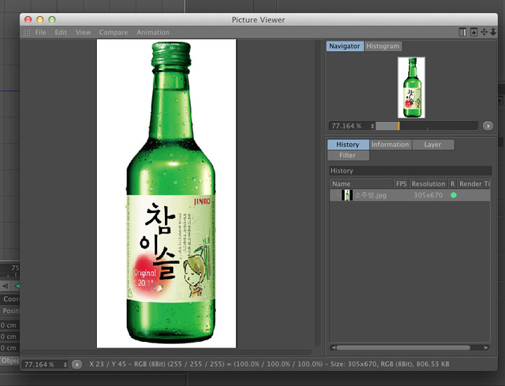 바탕화면에 있는 jpg확장자의 그림파일을 c4d 로 옮기면