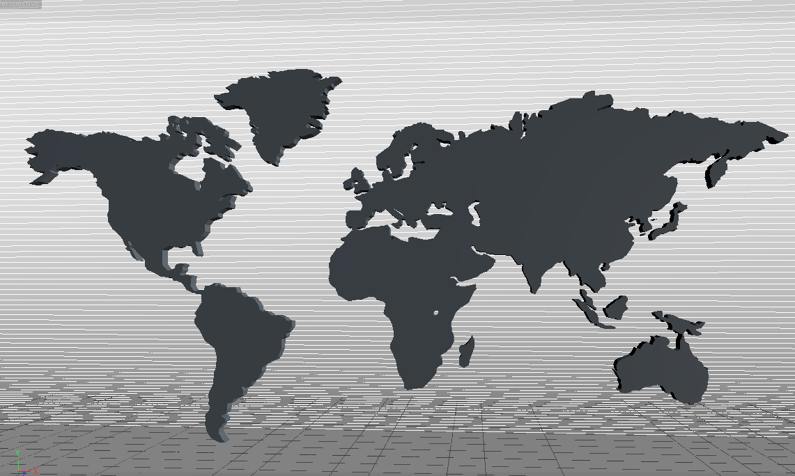 위와같이 세계지도를 일러스트에서 패스만 따서 시네마포디에서 Extrude NURBS를 주어 두깨를 주었습니다.