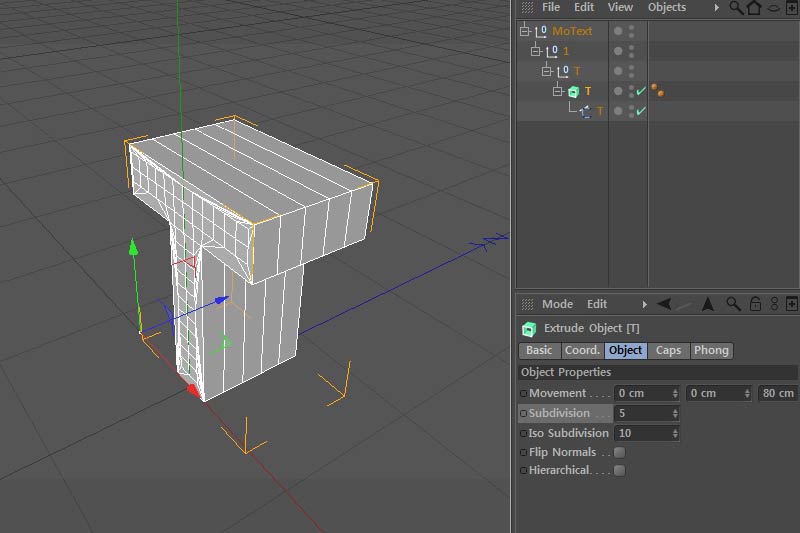 MoText 를 생성하면 세분화(Subdivision)를 조정하게되면 두께를 나타내주고 있는 면들에 엣지들이 생깁니다.