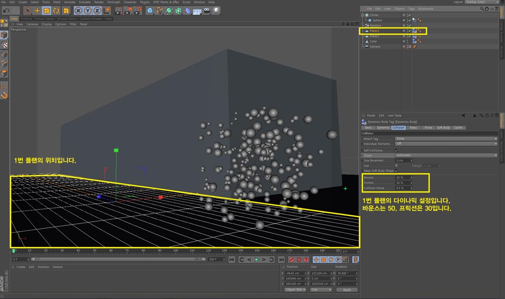 (큐브와 두 개의 플랜은 모두 컬라이더 바디입니다.)