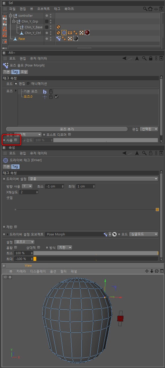 4)원본 FACE 오브젝트 몰프 포즈 옵션에서 변형된 face오브젝트를 가져오는 겁니다.