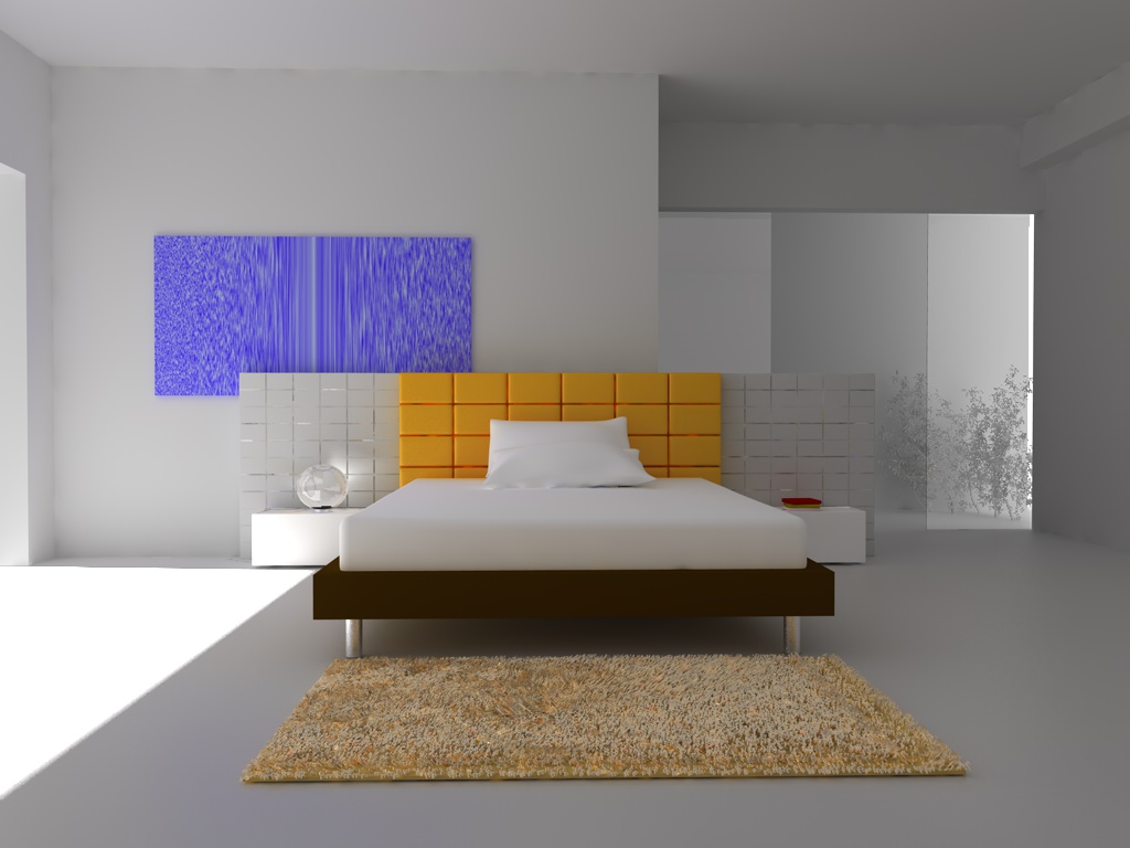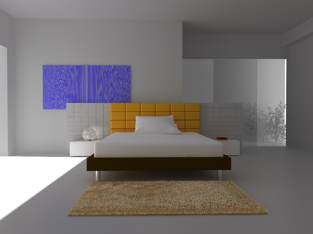 침대 머리에 있는 작은 격자를 QMC를 쓰고 나머지는 인테리어-프리뷰(작은 발광체) 모드로 적용한 랜더링입니다. 6:22