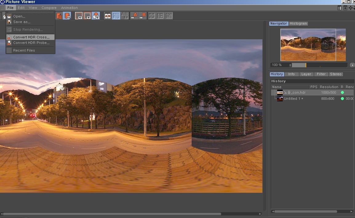 그림과같이 픽쳐뷰어 file 에서 변환한다고 알고있었습니다. 그런데 cross와probe 두가지 기능이있더라구요. 둘다해보니까 hdr이 다른 이미지로 생성되는건 알겠는데...