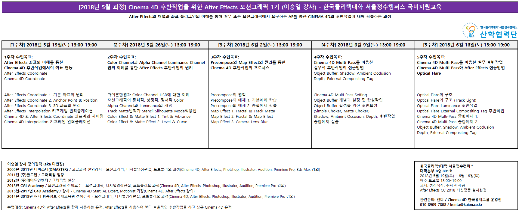 2018년 5월 Cinema 4D & After Effects 교육과정 모집 (한국폴리텍1대학 서울정수캠퍼스)