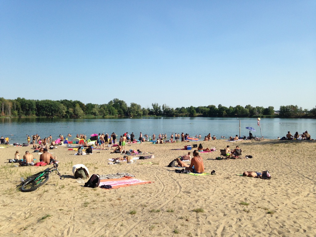 호수를 둘러싸고 정말 많은 사람들이 물놀이와 햇빛을 쐬고 있어요.
