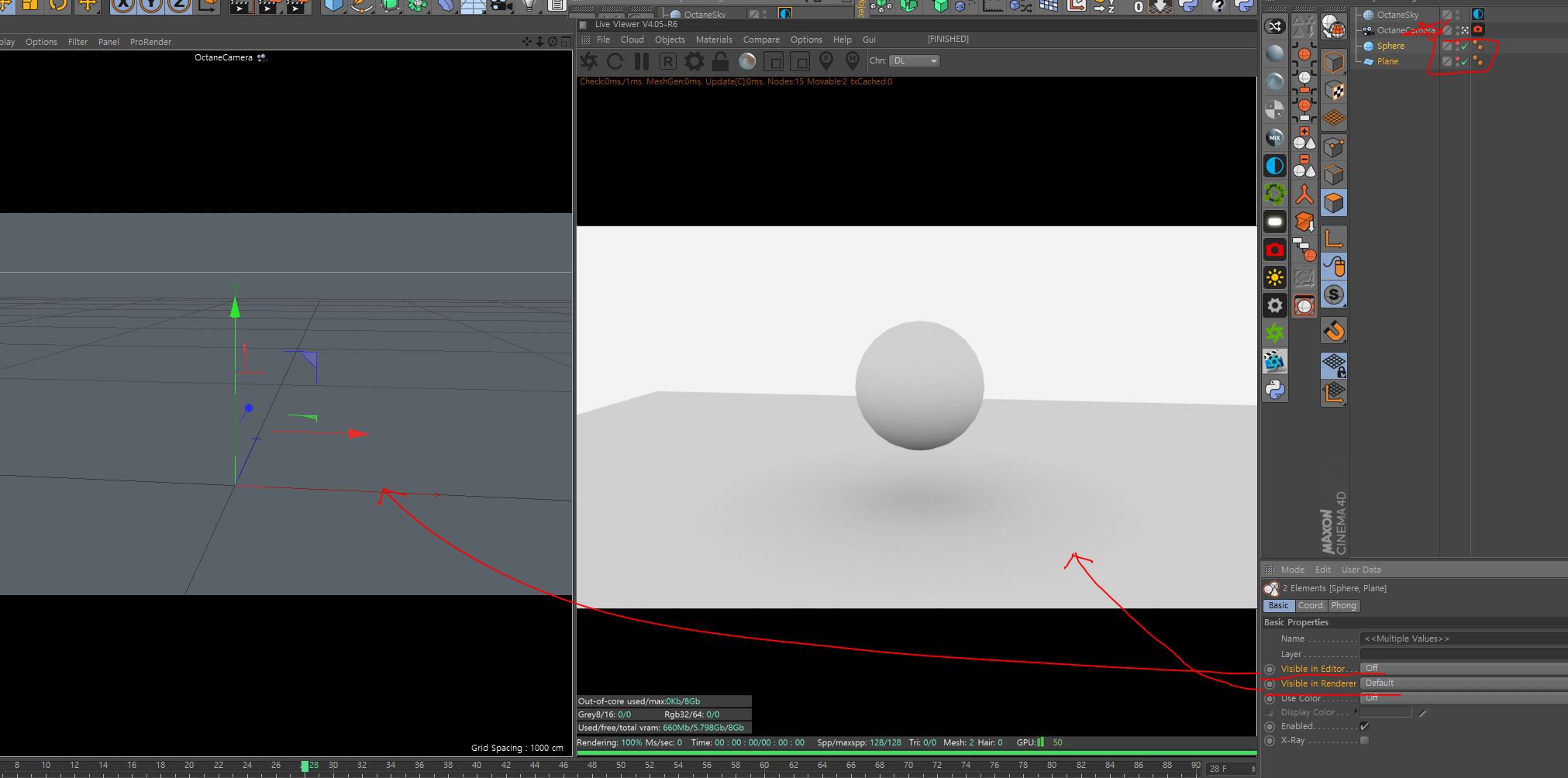 옥테인 렌더 프리뷰 창에, 기본 시포디 내 프리뷰 창에는 없는 오브젝트가 나옵니다. 그러니까, 없는 오브젝트인데 옥테인 프리뷰 창에는 나오는 겁니다.
