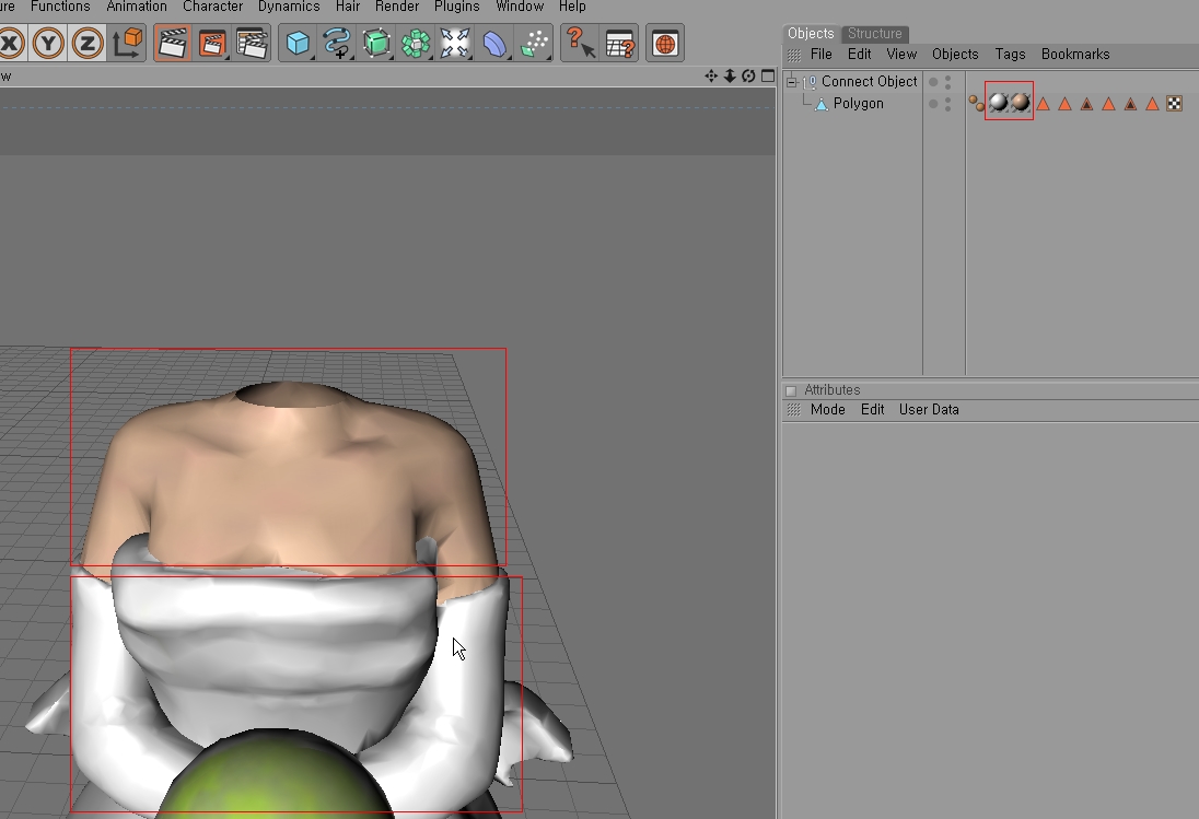 이 두 오브젝트를 Connect 하고 난 뒤 Cloth NURBS 를 주려고 하는데용.