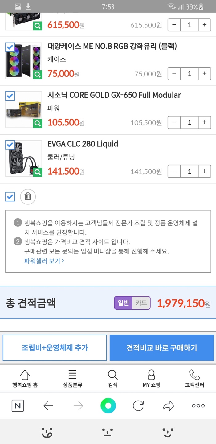 예산은 주변기기를 제외한 본체만 200만원으로 생각하고 있습니다. 아래와 같은 견적을 제안받았는데