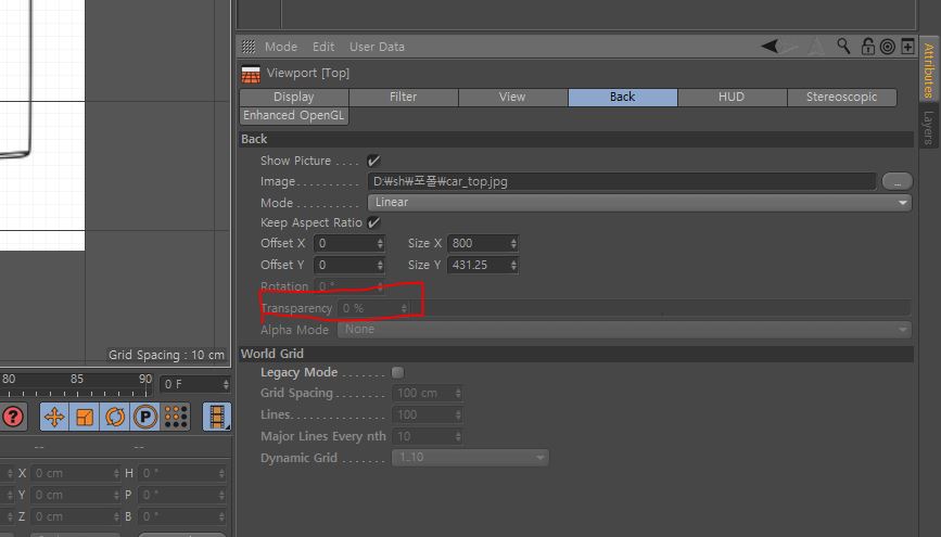 View setting에서 이미지를 삽입했는데 Transparency가 비활성화됩니다. 어떻게 활성화할수있나요??