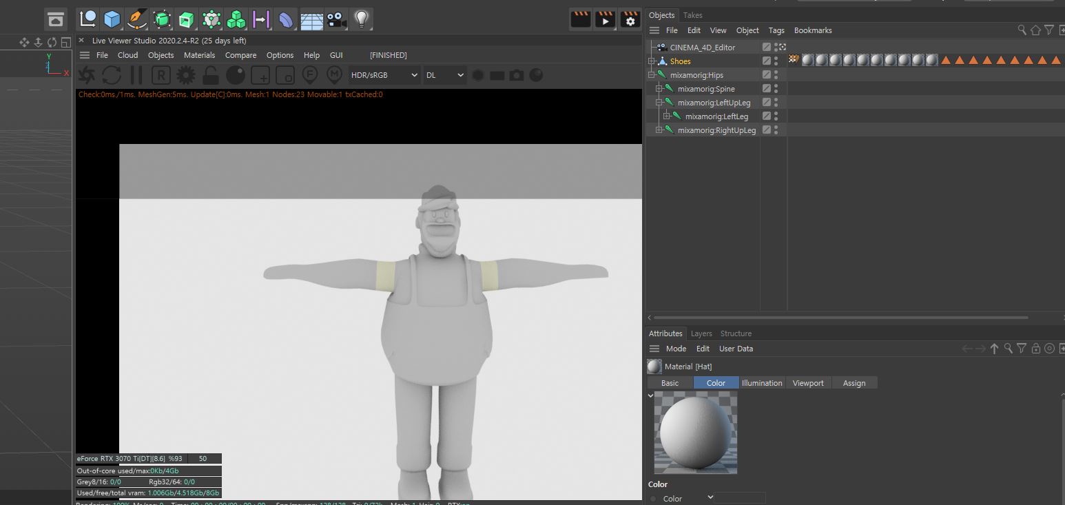 FBX로 Export해서 믹사모에서 리깅후, 다시 C4D에서 작업하려고 하는데 색을 다시 그대로 불러오고 싶은데