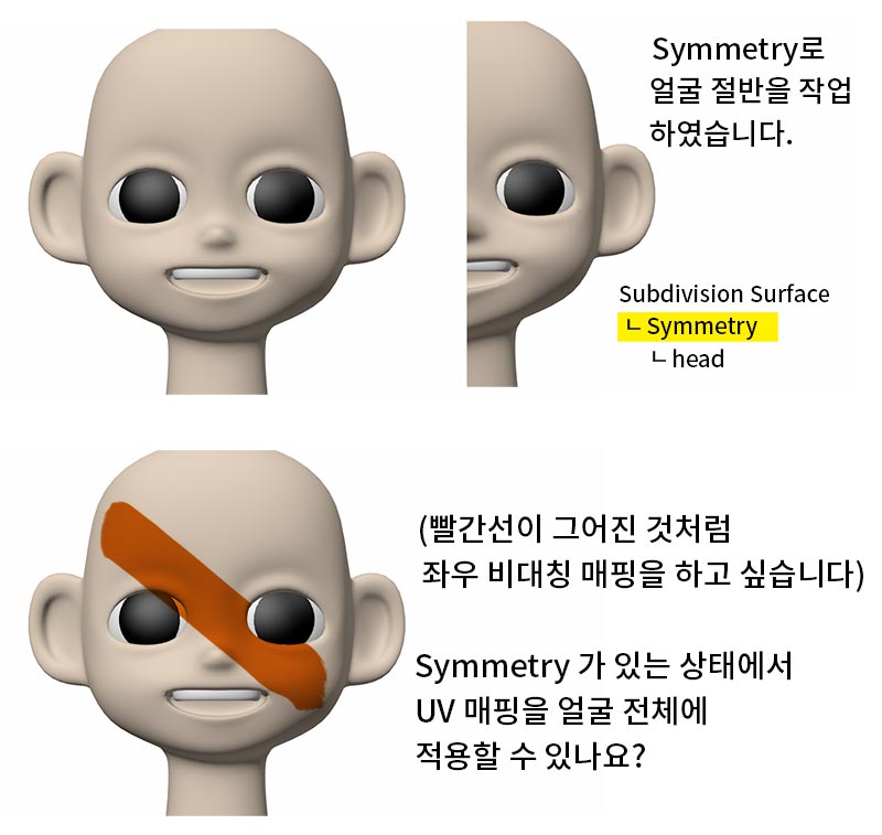 Symmetry 로 얼굴을 만들었는데요, 이 상태를 유지한 채