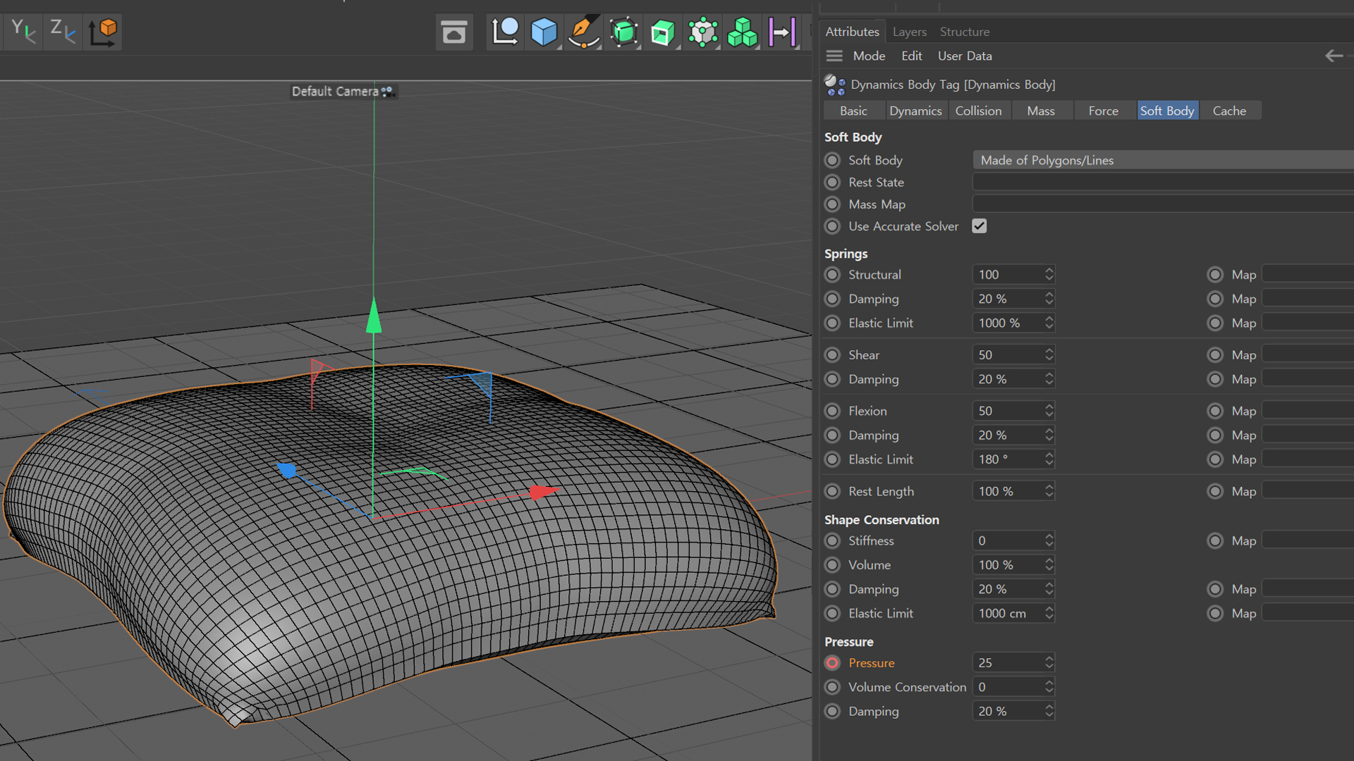 ㅅ시뮬레이팅을 하려고 pressure에 애니메이션을 넣고 확인을 하는데 바닥이랑 닿는 부분을 부풀어 오르지를 않더라고요 이거 어떻게 해결하면 되나요? ㅠㅠㅠㅠ