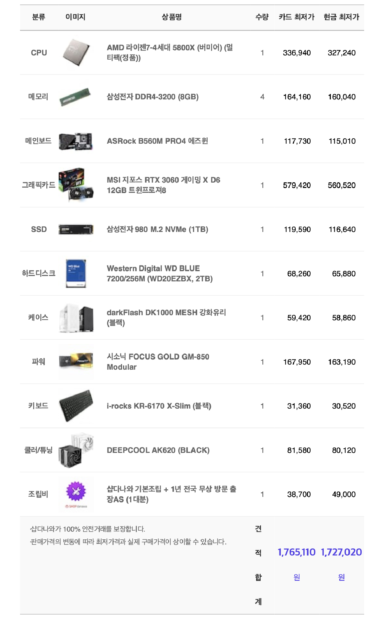 -SSD는 삼성 980 -> SK P31 1TB 혹은 삼성 970 EVO PLUS 1TB