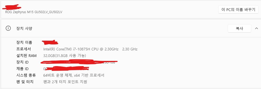 노트북은 ASUS 제피러스 m15사용 중이고요.