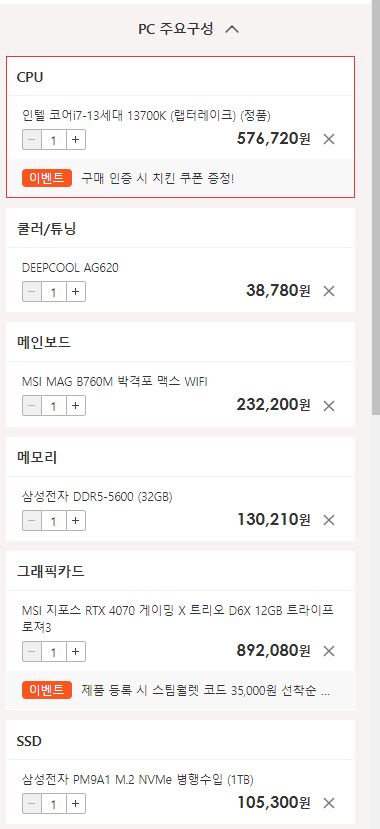 호환성이나 성능 쪽으로 견적 괜찮은지, 수정할 것 있다면 알려주세요!