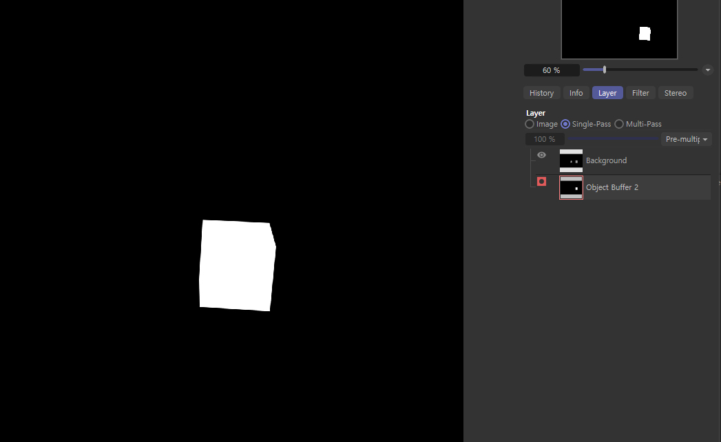 'Render Settings'에서 'Multi-Pass'를통해 'Object Buffer' 넣고 'Object Buffer Pass'에 '2' 넣었습니다.