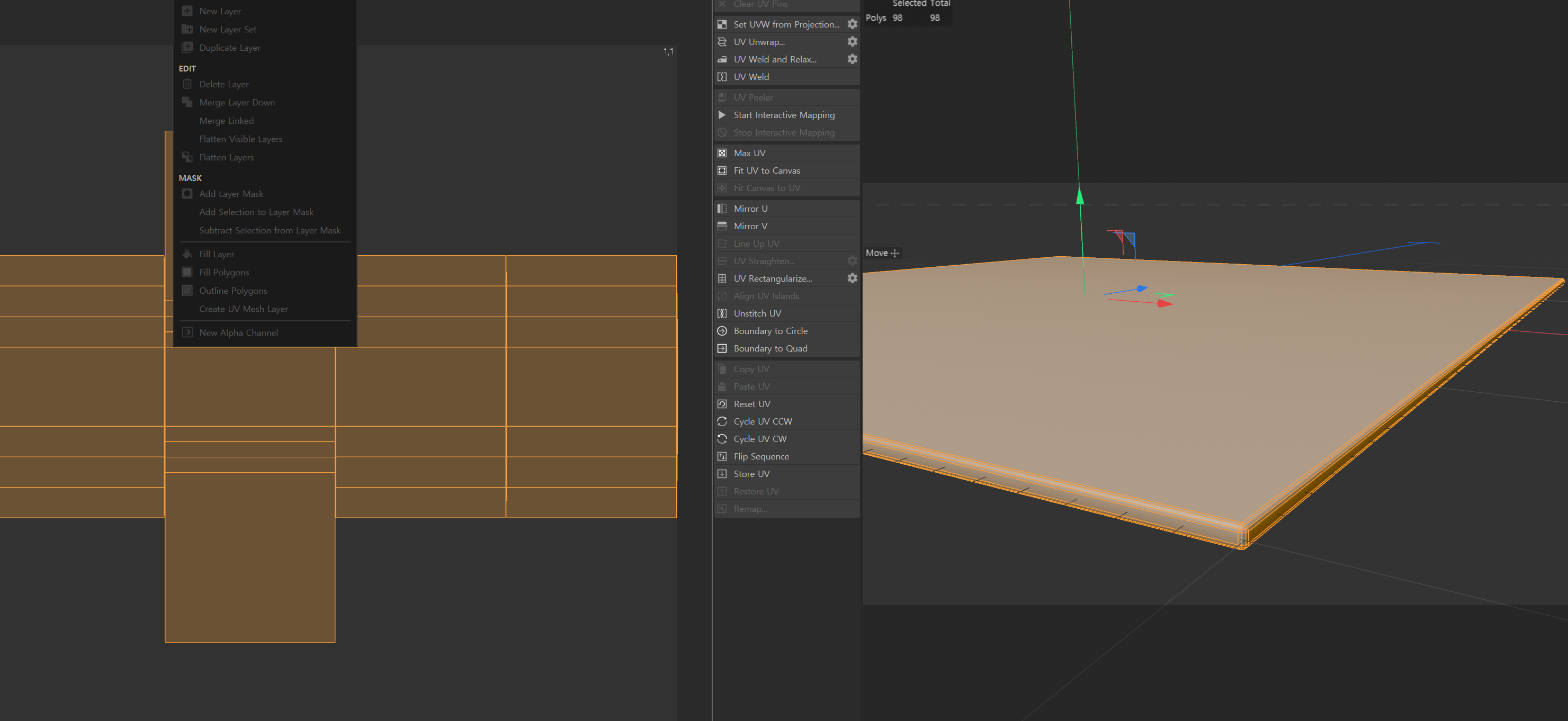 uv를 펴서 포토샵으로 가지고 가고 싶습니다. 유튜브 보며 따라하는데 버전이 달라서 헷갈리네요ㅜㅜ