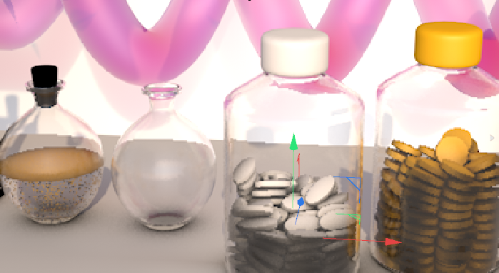 Cinema4D 자체에서 랜더를 돌리면 약통에 들어있는 약이 뿌옇게 뭐가 보이는데 이거 겹쳐서 이런건가요??