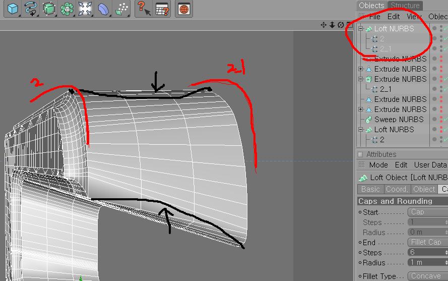 2와 2-1 사이에 스플라인을 하나더 넣으시면 그 형태도 반영되어서 형태가 만들어 집니다