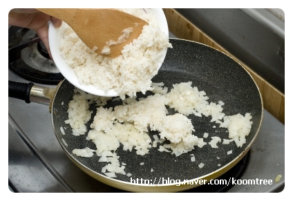 양파가 적당히 익었으면 밥을 넣어줍니다.