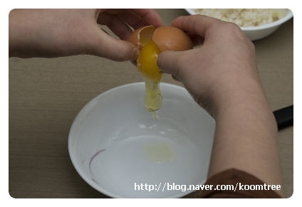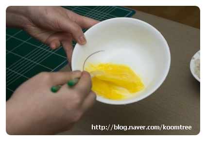 계란을 체에 처서 끈을 없애주셔도 좋습니다.