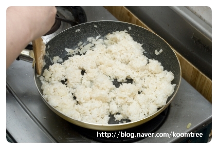 밥을 넣고 소금으로 간을 맞춰줍니다.
